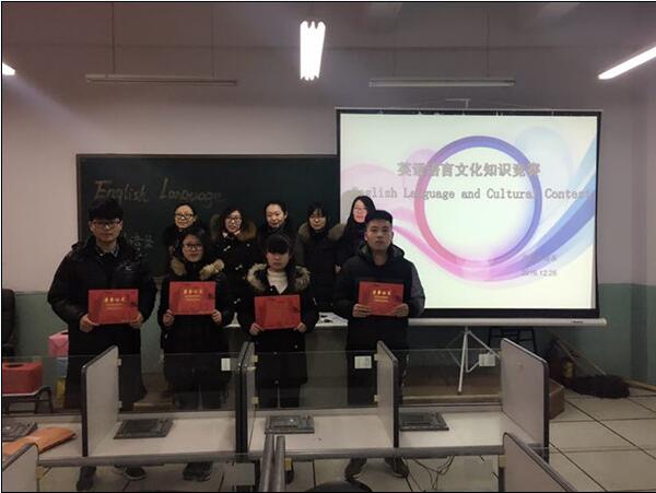 12月26日,英語語言文化知識競賽決賽在博學樓508舉行,在經過“生死時速”、“誰與爭鋒”、“力挽狂瀾”三個環節的激烈角逐之后,“第三隊”以110分的成績獲得冠軍,其他3支隊伍分獲二三名。
