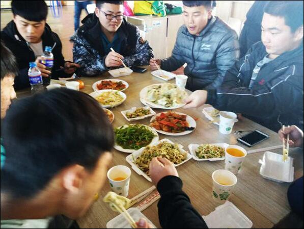 同學們用自己精心準備的節目和游戲,表達了對美好生活的向往和對老師辛勤付出的感激之情,整場晚會節目形式多樣、精彩紛呈,流行與古典兼收,溫情與火熱并舉,觀眾掌聲、喝彩聲不絕于耳。隨后,一盤盤熱氣騰騰的餃子和美味的菜肴端上桌子,香氣四溢,大家歡聲笑語,為這嚴寒冬日增添了一縷溫情。美好的時光總是十分短暫,4個小時的師生聯歡會在同學們意猶未盡的喝彩聲中結束。