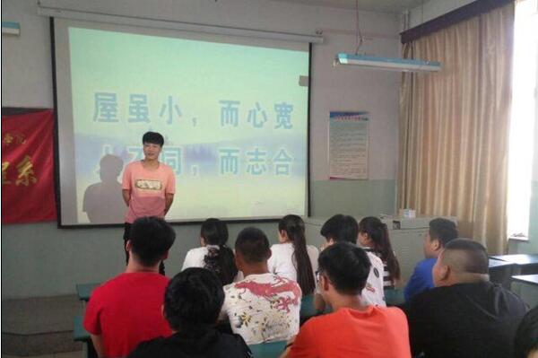 會上,系輔導員田超瓊強調了環(huán)境衛(wèi)生的重要性,良好的宿舍氛圍將帶動整個宿舍的風貌和精神,一個好的宿舍不光需要良好的衛(wèi)生環(huán)境,也需要積極的精神面貌,還有學習的氛圍。她要求大家以愛護宿舍環(huán)境為己任,自覺維護宿舍的清潔衛(wèi)生;就餐、上下宿舍樓不亂跑,自覺遵守宿舍紀律;加強自我教育,培養(yǎng)自身良好的心理品質,與舍友保持和諧的關系,建設環(huán)保節(jié)約及文明守紀型宿舍。最后,通過每個宿舍長對自己所在宿舍的介紹讓大家充分了解了每個宿舍所存在的優(yōu)缺點,優(yōu)點需要保持,缺點固然要解決,希望每個宿舍在這一次團日活動后都能有一個更好的進步,爭創(chuàng)文明宿舍。