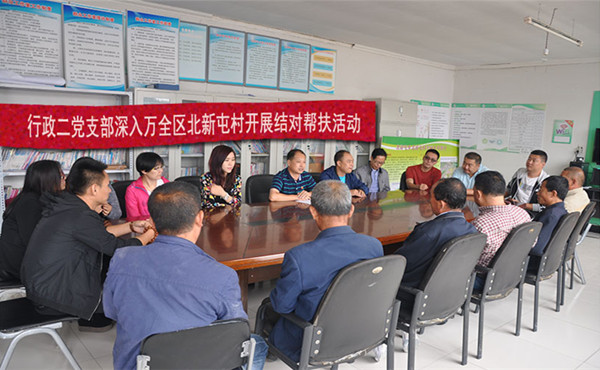 行政二支部一行實地了解了駐村工作組的工作開展和生活情況,并與駐村干部和村“兩委”班子進行了座談交流。今年年初,受學院黨委的派遣,行政二黨支部黨員陳躍龍、王雷兩名同志進駐北新屯村積極開展精準脫貧工作。會上,大家認真聽取了陳躍龍、王雷的駐村工作情況匯報,駐村以來克服各種困難,做了大量工作,取得了階段性成果,受到了區、鄉、村領導和全村村民的充分肯定和認可。同時了解了幫扶村的基本情況、發展思路、組織建設以及駐村干部的日常工作、生活等情況。駐村第一書記葉翀翔代表駐村工作組表示,今后將會以更加飽滿的熱情,立足本職工作,為村基層組織建設和經濟發展貢獻自己的力量。村“兩委”班子也對駐村干部所做的工作給予充分肯定,并希望駐村干部積極發揮個人特長,利用各種社會資源,繼續為村多做工作。與村“兩委”班子、全體村民團結合作、共同努力,為早日實現脫貧目標做出更大貢獻。