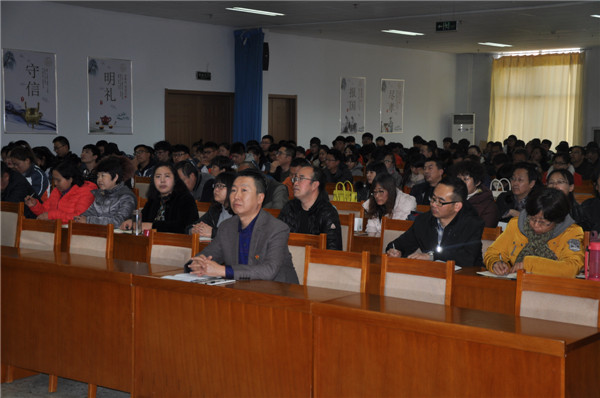 為深入學習貫徹黨的十九大精神,根據市委教育工委的安排部署,11月15日下午,學院黨委在綜合樓307報告廳舉辦學習宣傳貫徹黨的十九大精神專題報告會,邀請市委講師團講師,河北北方學院法政學院黨委書記、馬克思主義理論教學部黨總支書記賈耀忠教授作宣講報告。學院黨委書記胡煒主持會議并講話,學院領導班子成員,全體黨員干部以及師生代表共300余人聆聽了報告。