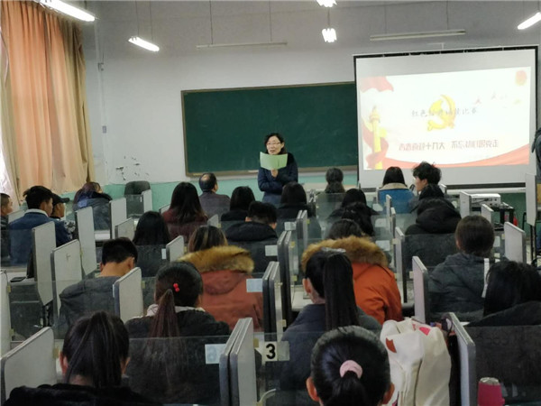 11月9日,應(yīng)用外語(yǔ)系開(kāi)展“獻(xiàn)禮十九大,不忘初心跟黨走”主題紅色經(jīng)典誦讀比賽。系主任劉澎、系副書(shū)記張曉鵬、團(tuán)總支書(shū)記張麗超、公共教研室主任李海彥、梁麗老師擔(dān)任評(píng)委。比賽由馬皓天同學(xué)主持。