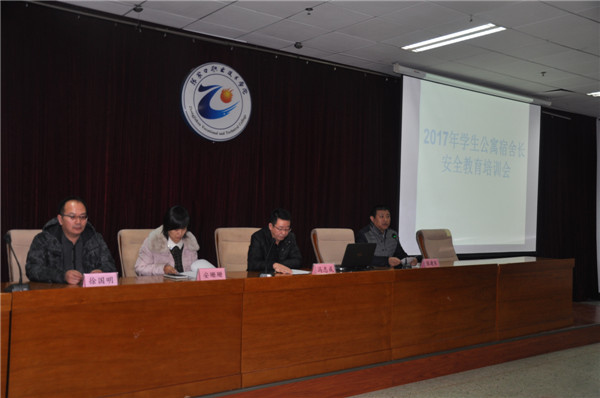 12月1日下午,學(xué)院在綜合樓307報告廳舉辦2017年學(xué)生公寓宿舍長安全教育培訓(xùn)會。學(xué)工處處長馮志成,副處長安珊珊、張建東,公寓管理科科長徐國明,公寓輔導(dǎo)員、宿管委員會學(xué)生干部及大一、大二年級宿舍長300余人參加了培訓(xùn)會。培訓(xùn)會由學(xué)工處處長馮志成主持。