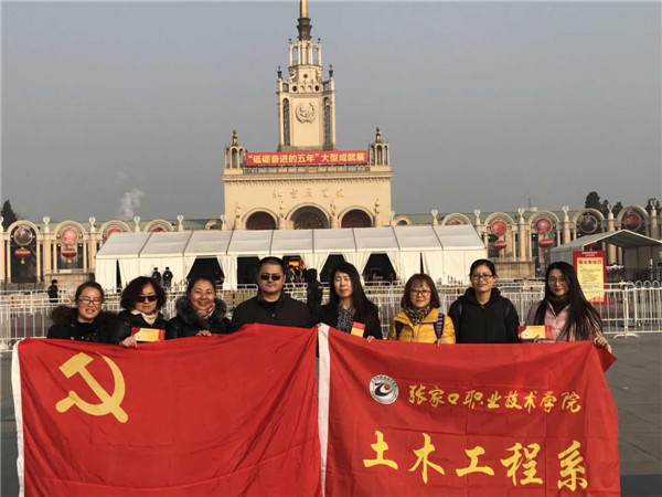 為深入學習貫徹黨的十九大精神,深刻領會習近平新時代中國特色社會主義思想,12月29日,土木工程系組織系部9名黨員教師前往北京展覽館參觀“砥礪奮進的五年”大型成就展。