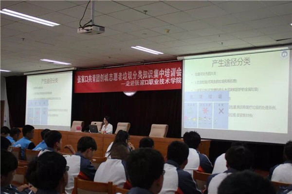 為助力我市創建全國文明城市,增強志愿者知識儲備,5月14日,在團市委統一安排部署下,“創城志愿者集中培訓會”走進我院,特邀張家口學院專業教師為我院志愿者進行垃圾分類知識集中培訓。共青團張家口市委副書記溫旭春出席培訓會,我院生態環保志愿服務隊全體志愿者以及各系志愿者骨干代表300余人參加培訓。