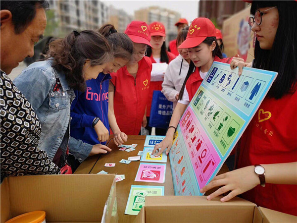 本次活動將宣傳講解與游戲互動相結(jié)合,通過宣傳展板、宣傳冊、定制禮品等方式,在輕松愉快的氛圍中完成對垃圾分類與減量的宣傳?;顒蝇F(xiàn)場,志愿者們通過展示垃圾分類物流圖解,發(fā)放垃圾分類宣傳冊,為廣大居民宣講垃圾分類的意義、標準及如何分類等基本常識。活動中還融入了“給垃圾找個家”、“垃圾分類速速貼”等形式新穎、寓教于樂的游戲環(huán)節(jié),以簡明易懂的游戲規(guī)則和豐富的小禮品吸引眾多居民的參與,使社區(qū)居民在互動中加深了對垃圾分類知識的了解。本次活動進一步將“綠色、低碳、環(huán)?!钡睦砟罡灿谑忻裥闹校偈股鐓^(qū)居民養(yǎng)成垃圾分類的良好習(xí)慣,為建設(shè)美麗家園共同努力。