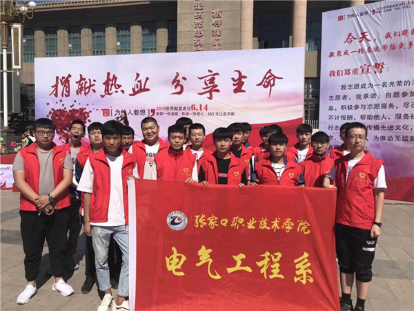6月14日是第十五個世界獻血者日,由張家口無償獻血領導小組辦公室、張家口市計生委、張家口市中心血站等單位聯合舉辦的“世界獻血者日”主題宣傳活動在文化廣場舉行,我院電氣工程系和裝飾藝術系的40名志愿者參加活動。