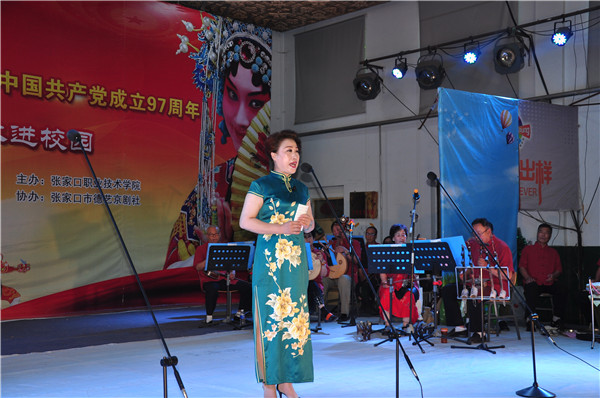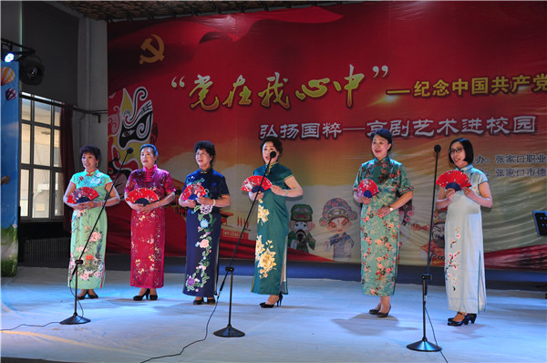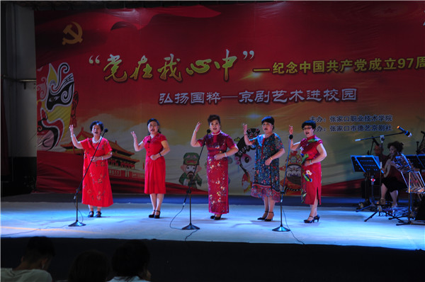 為慶祝中國(guó)共產(chǎn)黨97周年華誕,6月27日,由張家口職業(yè)技術(shù)學(xué)院主辦,張家口市德藝京劇社協(xié)辦的“黨在我心中—弘揚(yáng)國(guó)粹京劇進(jìn)校園”專場(chǎng)演出在師生活動(dòng)中心舉行。校領(lǐng)導(dǎo)胡煒、王立秋、宋德明與部分師生代表共同觀看演出。