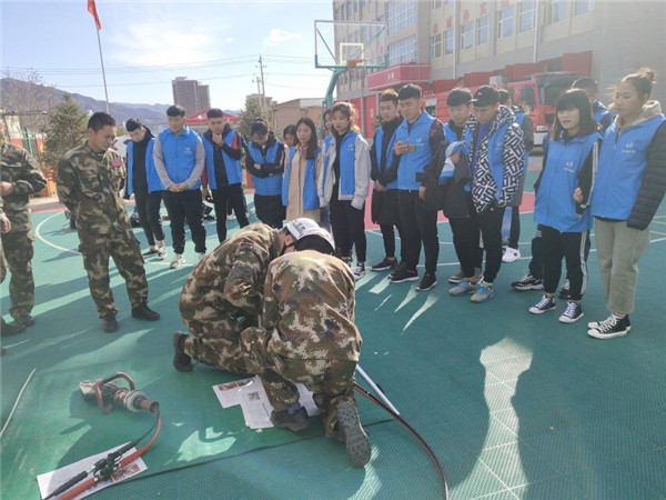在消防官兵的帶領下,志愿者參觀了訓練基地,了解各類運動器材和消防裝備的使用方法。消防官兵通過各種生動有趣的講解和演練調動志愿者們學習的熱情,以真實案例普及火災發生的起因、火場處置、逃生方法等知識。