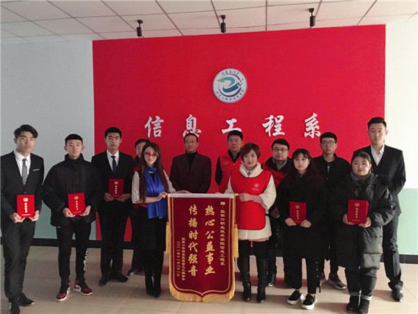 1月9日,在信息工程系召開的志愿者表彰大會上,張家口市橋東區慈善義工聯合會負責人向信息工程系頒發了“熱心公益事業,傳播時代強音”錦旗。