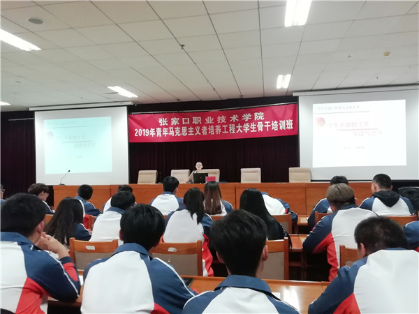 培訓(xùn)期間,院團(tuán)委書記馬燕坤做了題為《學(xué)生干部工作方法與藝術(shù)》的講座,從學(xué)生干部的角色定位、能力素質(zhì)提升、工作方法與藝術(shù)等方面作了詳細(xì)闡述;社科部主任白義做了題為《青年學(xué)生要把馬克思主義哲學(xué)作為自己的看家本領(lǐng)》的講座,圍繞“馬克思主義哲學(xué)是科學(xué)的世界觀和方法論”核心思想,幫助學(xué)員們堅(jiān)定馬克思主義信仰;組織人事處副處長邵慧彬做了《發(fā)展黨員的流程與注意事項(xiàng)》專題報(bào)告,勉勵學(xué)員積極地向黨組織靠攏,真正從思想上入黨愛黨;院團(tuán)委干事姬斷萍做了《十九大報(bào)告精神專題講座》,對十九大報(bào)告進(jìn)行詳細(xì)解讀,對新時代的政治基本知識做了認(rèn)真講解;社科部教師宋輝做了《馬克思主義信仰與青年的歷史使命》專題講座,鼓勵學(xué)員勇于承擔(dān)歷史使命,以青春之我鑄就人生輝煌。