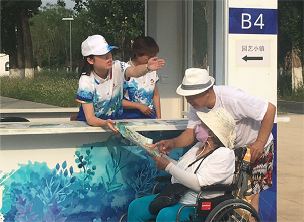 北京世界園藝博覽會是由中國政府主辦、北京市承辦的最高級別的世界園藝博覽會。我院志愿者們在完成7天的游客信息咨詢、語言服務、應急救援等城市志愿服務工作后,于6月24日起,正式進入園博會園區內29個志愿服務崗亭,擔負信息咨詢、路線指引、語言服務、導覽圖發放等工作。