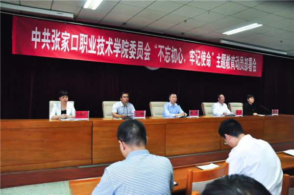 黨委副書記張樹敏宣讀了《中共張家口職業技術學院委員會關于開展“不忘初心、牢記使命”主題教育實施方案》。
