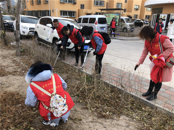 全體黨員教師還來到東寧街社區開展創城志愿服務活動,進行垃圾雜物的撿拾、清掃地上和小廣告鏟除,向居民進行垃圾分類的宣講。