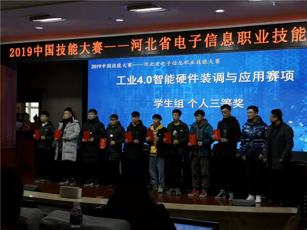 12月7日至8日,由河北省教育廳、河北省工業和信息化廳、河北人力資源和社會保障廳聯合主辦的2019中國技能大賽?—— 河北省電子信息職業技能大賽“工業4.0智能硬件裝調與應用”項目比賽在河北化工醫藥職業技術學院舉行。電氣工程系師生團隊參賽并獲獎。