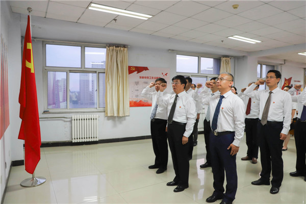 隨后,新當(dāng)選的“兩委”委員在黨旗下,重溫入黨誓詞。