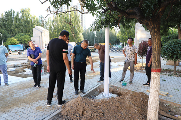 在綜合行政樓前廣場提升改造項目施工現場,馮印濤詳細了解工程進度及施工中存在的困難、問題,與施工方負責人商討解決辦法。他強調,廣場提升改造要從創建新時代高水平高職院校的奮斗目標和打造職業院校文明校園典范的高度出發,充分融入綠色環保理念,考慮風能、太陽能等清潔能源與照明系統的有機結合、功能互補,體現時代感、科技感和學院發展水平。要建立行之有效的聯絡員制度,保持學院、處室、施工方各層級溝通渠道暢通,及時解決建設中出現的各類問題,確保工程項目按時、保質順利完工。
