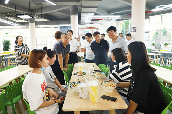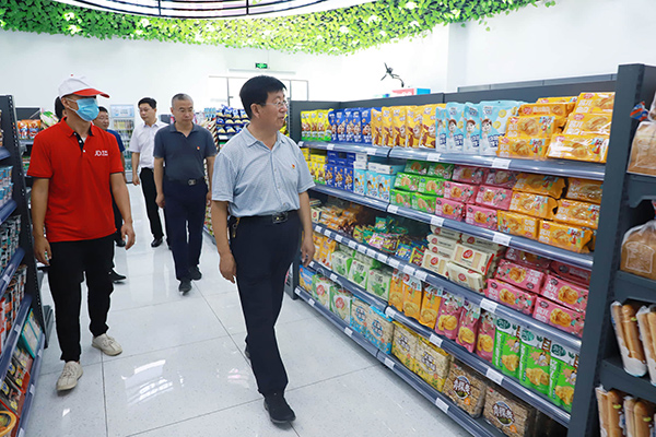馮印濤、王立軍一行先后到京東校園館及周邊區(qū)域,礪能樓、4號公寓樓和學生食堂進行檢查,督導各環(huán)節(jié)迎接學生返校準備情況。在京東校園館,馮印濤仔細查看貨品儲備情況,叮囑經(jīng)營管理人員嚴把進貨渠道,嚴格食品質(zhì)保,豐富物品種類,做好服務保障。在新改造升級的學生食堂,馮印濤走到正在用餐的學生們中間,詢問學生們的用餐體驗,勉勵學生們克服疫情帶來的不利影響,抓緊時間,刻苦學習,為推動張職院向新時代高水平高職院校邁進貢獻一份力量。