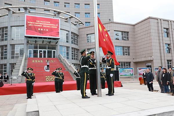 13名獲“疫情防控表現突出人員”獎教師、99名“從教三十年”優秀教師、40名2020學年度榮獲市級以上獎勵教師受到表彰。各系學生代表向受表彰人員及全體教職員工獻上了鮮花。