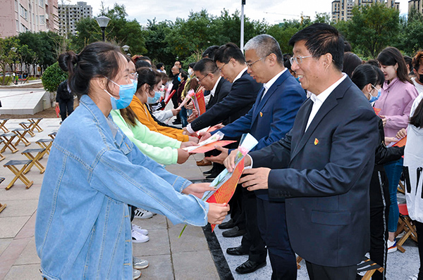 2019年碩博引進人才、機械工程系教師胡依平,2020年河北省師德標兵、信息工程系教授陳淑敏代表新老教師作了發言。校學生會主席、經濟管理系學生宮興冉作為學生代表作了發言。