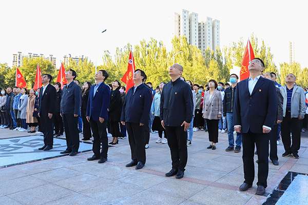 黨委書記馮印濤發(fā)表致辭。他指出,抗日戰(zhàn)爭的偉大勝利,是以愛國主義為核心的民族精神的偉大勝利,是中國共產黨發(fā)揮中流砥柱作用的偉大勝利,是全民族眾志成城奮勇抗戰(zhàn)的偉大勝利,是中華民族從近代以來陷入深重危機走向偉大復興的歷史轉折點。要實現(xiàn)中華民族偉大復興,必須堅持中國共產黨領導,必須堅持走中國特色社會主義道路,必須堅持以人民為中心,必須堅持斗爭精神,必須更加緊密地團結在以習近平同志為核心的黨中央周圍,高舉中國特色社會主義偉大旗幟,向著中華民族偉大復興的光輝彼岸奮勇前行。