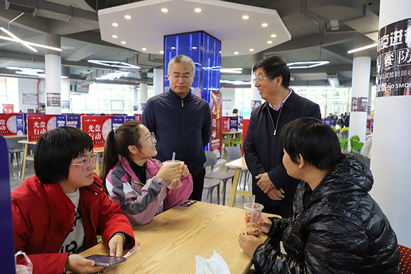 “飯菜還吃得慣嗎?質量還滿意嗎?價錢貴不貴?”。在學生食堂,馮印濤、王立軍與2020級報到新生及家長們進行了交流。馮印濤、王立軍對家長和學生的到來表示歡迎,對家長和學生們給予張家口職業技術學院的信任表示感謝,也希望學生們能夠迅速融入大學生活,開啟自己人生歷程中嶄新的一頁。