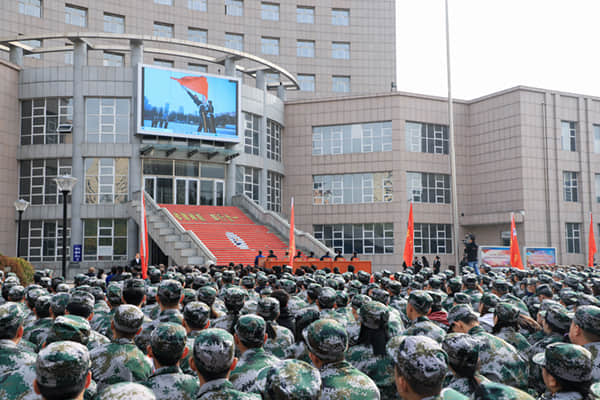 黨委副書記楊汝明主持大會,全體中層干部和三級科室負(fù)責(zé)人、2020級輔導(dǎo)員和全體新生、承訓(xùn)部隊教官共計4000余人參加。
