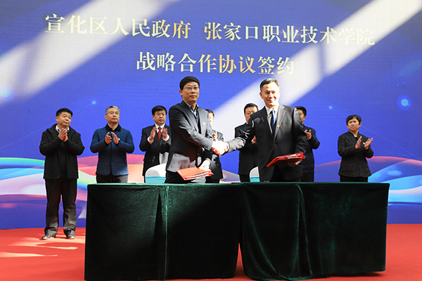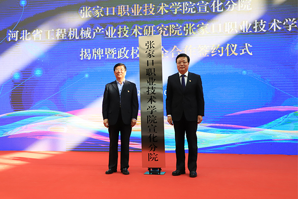 儀式上,學(xué)院黨委書記馮印濤、宣化區(qū)委書記張聰共同為張家口職業(yè)技術(shù)學(xué)院宣化分院揭牌。