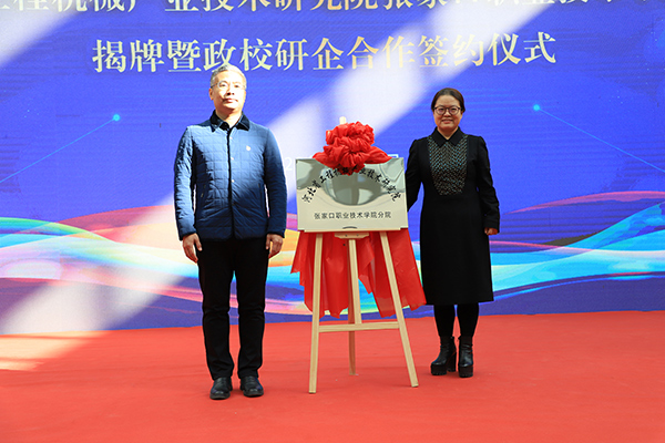 院長王立軍、河北省工程機(jī)械產(chǎn)業(yè)技術(shù)研究院院長王文梅共同為河北省工程機(jī)械產(chǎn)業(yè)技術(shù)研究院張家口職業(yè)技術(shù)學(xué)院分院揭牌。