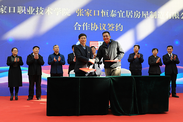 常務(wù)副院長李煒杰代表我院分別與宣化區(qū)人民政府黨組副書記張國慶簽署《戰(zhàn)略合作協(xié)議》;與河北省工程機(jī)械產(chǎn)業(yè)技術(shù)研究院院長王文梅簽署《校研合作協(xié)議》;與張家口恒泰宜居房屋制造有限公司總經(jīng)理武衛(wèi)簽署《校企合作協(xié)議》。