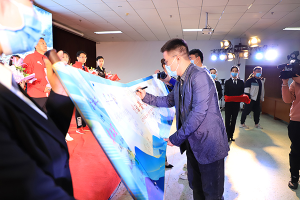 宣講結束后,出席領導、嘉賓與現場師生共同在印有“燃動青春 助力冬奧”主題的卷軸上簽名、留言,表達對北京冬奧會的期待與祝愿。