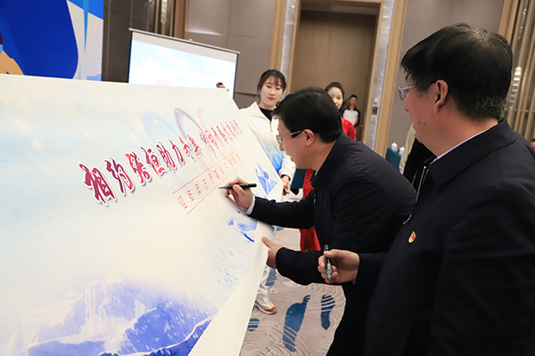 與會嘉賓還共同在卷軸上簽寫下名字與祝福,為冬奧會成功舉辦加油助力。