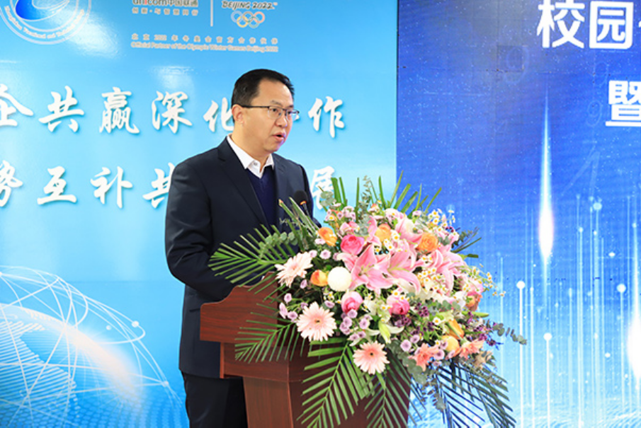 中國聯通張家口分公司總經理仝博在致辭中表示,中國聯通作為2022年北京冬奧會唯一官方通信合作伙伴,積極響應網絡強國、數字中國的戰略號召,深入踐行新發展理念,以共建共享新模式推動5G發展取得突破性進展,有效助力了張家口市產業轉型升級發展。張家口職業技術學院作為全國首批啟動的省級示范高職院校,以服務黨和國家戰略、服務區域經濟、服務張家口七大主導產業為己任,走創新發展、特色發展、融合發展之路,積極探索學院與政府、企業、園區、平臺、要素多元深度合作模式,實現政校企深度對接,全要素多元融合。張家口聯通也將以此次校企合作為契機,繼續秉承“校企聯動、優勢互補、支持教育、戰略共贏”的原則,充分發揮自身作用,全力支持學院信息化校園、數字化校園建設,為加快推進張職院教育信息化進程貢獻智慧和力量。