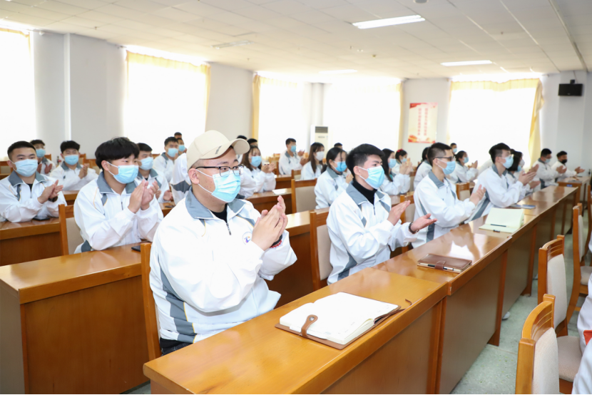 講堂上,市軍隊離休退休干部第三休養所負責人與土木工程系師生認真聆聽,并用熱烈的掌聲向老人致敬,祝福老人在國富民強的新時代安享幸福晚年。