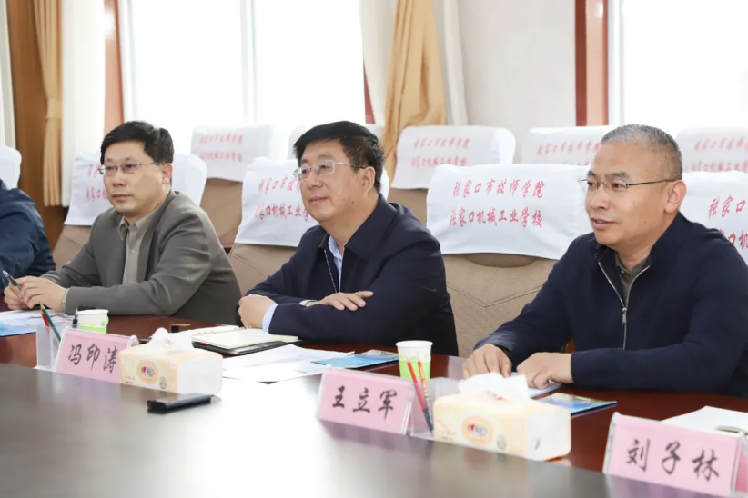 常務(wù)副院長(zhǎng)李煒杰、副院長(zhǎng)劉子林、張家口技師學(xué)院副院(校)長(zhǎng)趙容福、副院(校)長(zhǎng)張志軍、副院(校)長(zhǎng)安蘊(yùn)、黨委副書記周穎、紀(jì)委書記李曄及雙方院校相關(guān)行政處室、教學(xué)系部主要負(fù)責(zé)人、中層干部參加座談。