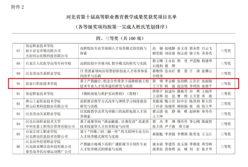 河北省教學成果獎是經河北省人民政府批準設立的省級教學成果獎,每兩年組織評審一次,是全省教育系統最高級別的教學專項獎勵。本屆職業教育教學成果獎分中等職業教育、高等職業教育兩組進行評審,高職教育領域共評選出教學成果190項。