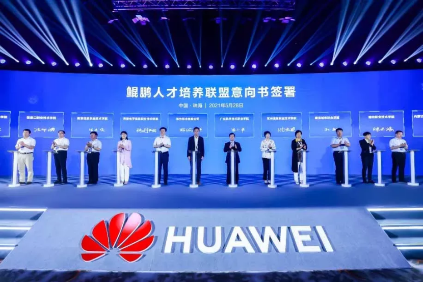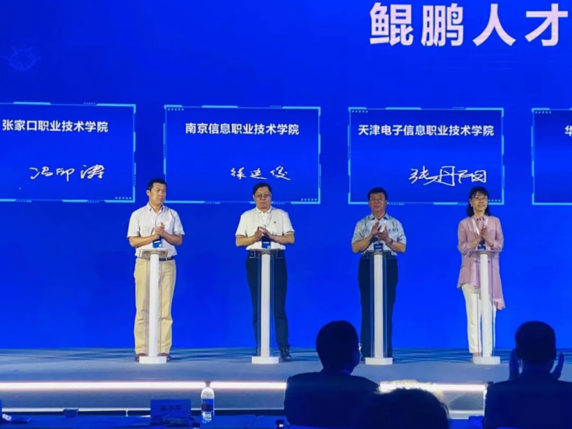 現(xiàn)場(chǎng)還舉行了《鯤鵬人才培養(yǎng)聯(lián)盟意向書(shū)》簽署儀式和云中高職樣板點(diǎn)揭牌儀式,標(biāo)志著華為與職業(yè)院校、生態(tài)伙伴企業(yè)共同攜手落實(shí)“云中高職”發(fā)展戰(zhàn)略,努力探索未來(lái)智慧化高職教育新形態(tài)取得良好開(kāi)端。作為河北省首批鯤鵬產(chǎn)業(yè)學(xué)院建設(shè)院校之一,黨委書(shū)記馮印濤代表我院簽署了《鯤鵬人才培養(yǎng)聯(lián)盟意向書(shū)》。