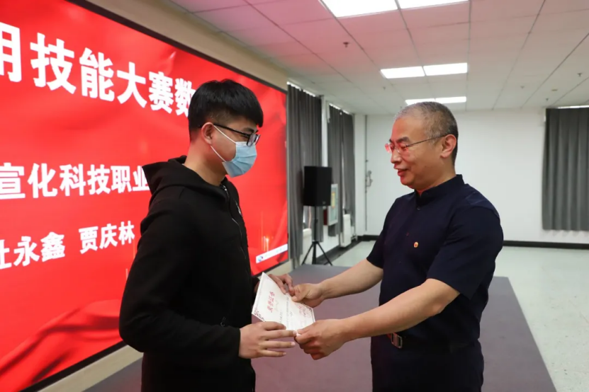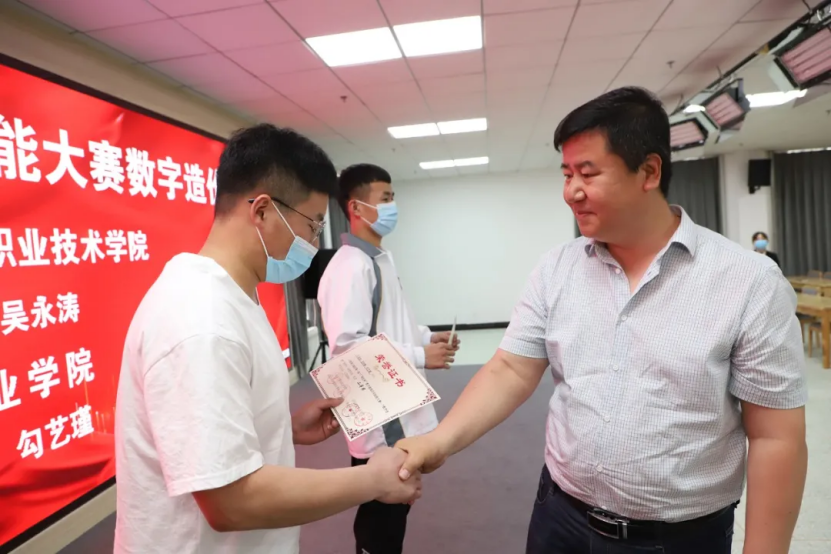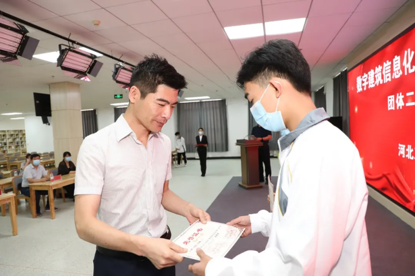 院長王立軍、宣化科技職業學院副院長杜曉鳴、河北工業職業技術學院宣鋼分院副院長王東衛、廣聯達科技股份有限公司數字高校BU華北大區總經理王光思為獲得一等獎的兩支團隊、二等獎四支團隊、三等獎六支團隊頒獎。