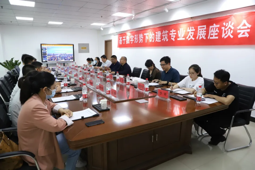 頒獎儀式后,三院校領導、大賽主要籌備人員及教師代表在我院知行樓六樓會議室召開了基于數字形勢下的建筑專業發展座談會,與會嘉賓就深化產教融合、校企合作、專業建設及資源共享等問題進行了深入交流和探討。