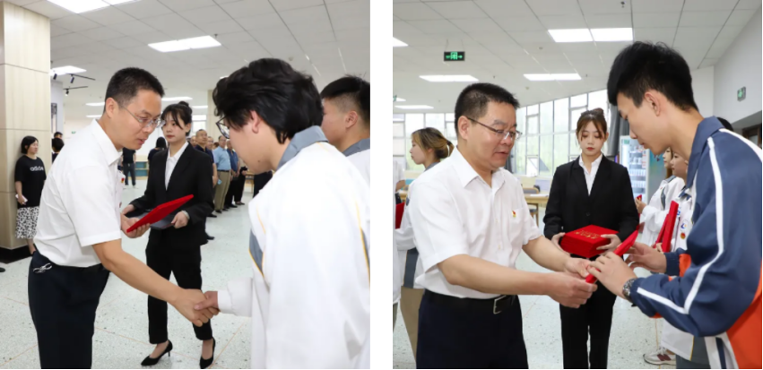 黨委副書記楊汝明主持開展儀式;院長王立軍宣讀了獲獎名單,并為陳軍娟等12名獲獎教師頒獎;副院長胡偉奇、紀委書記周文勝為安世行等20名獲獎學生進行頒獎。