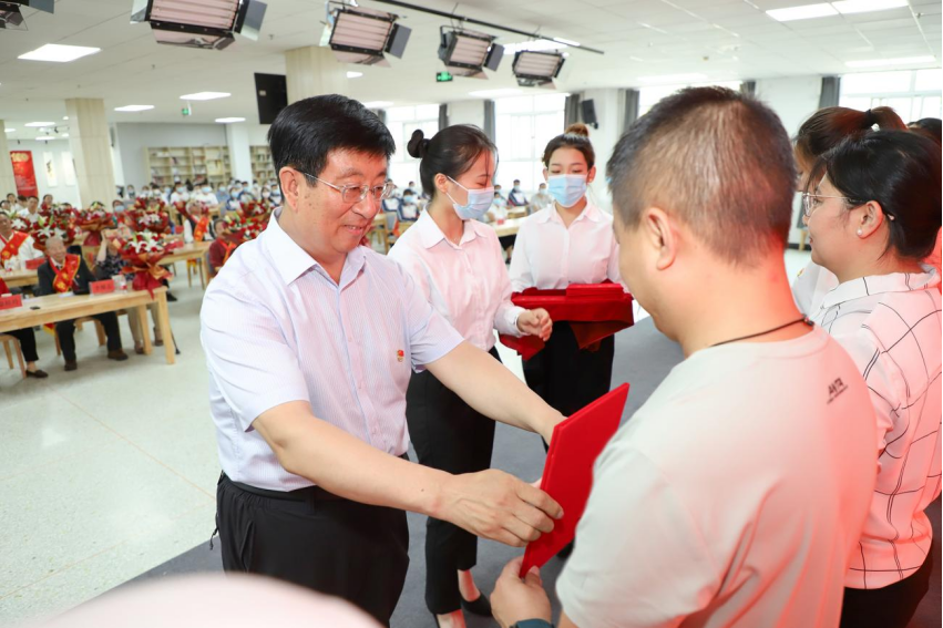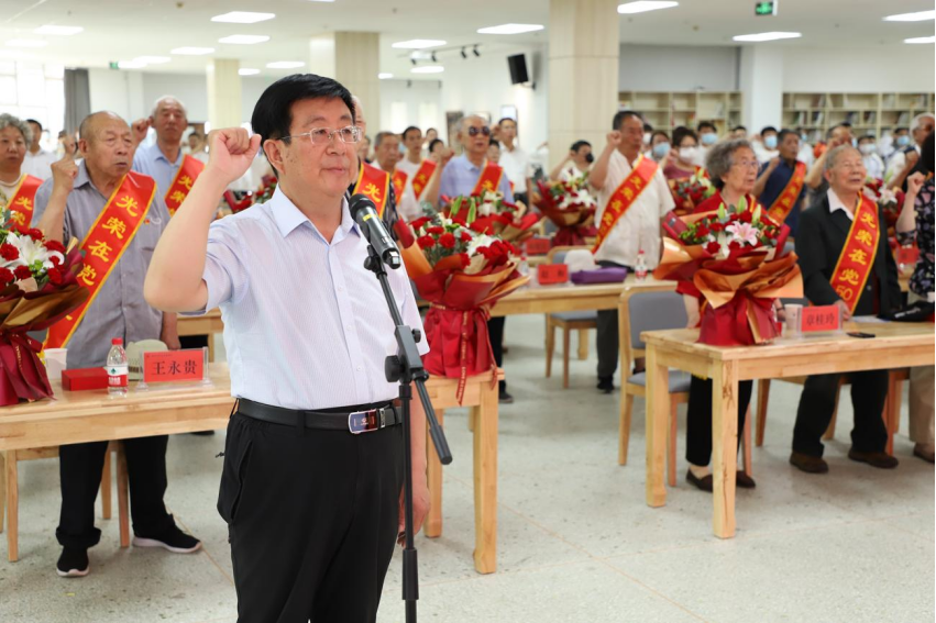 馮印濤強(qiáng)調(diào),26位老黨員榮獲“光榮在黨50年”紀(jì)念章是全院的光榮,也是全體黨員的光榮,老黨員、老同志是學(xué)院事業(yè)發(fā)展的寶貴財(cái)富和精神力量,學(xué)院每名黨員干部都要向老黨員學(xué)習(xí)、看齊、致敬。慶祝是為了更好地傳承,傳承是為了將黨的宏偉事業(yè)不斷推向前進(jìn)。學(xué)院各項(xiàng)事業(yè)正迎來(lái)高質(zhì)量發(fā)展的重大機(jī)遇期,隆重慶祝中國(guó)共產(chǎn)黨成立100周年,就是要讓每一名黨員干部在回望初心中牢記使命責(zé)任,在回顧歷史中重整行裝再出發(fā),以最堅(jiān)定的立場(chǎng)、最自覺(jué)的行動(dòng)、最昂揚(yáng)的干勁拼出好樣子、干出新輝煌,為黨的生日獻(xiàn)上最有意義的禮物。全體黨員一是要堅(jiān)定理想信念,恪守對(duì)黨忠誠(chéng)。堅(jiān)持不懈用黨的創(chuàng)新理論武裝頭腦、指導(dǎo)實(shí)踐、推動(dòng)工作,主動(dòng)適應(yīng)學(xué)院改革發(fā)展新常態(tài),把個(gè)人的聰明才智融入到學(xué)院的改革與發(fā)展之中,在崗位上切實(shí)發(fā)揮先鋒模范作用,在學(xué)院建設(shè)新時(shí)代高水平高職院校過(guò)程中勇挑重?fù)?dān)、沖鋒在前;二是要牢記立德樹(shù)人,堅(jiān)守初心使命。堅(jiān)持以立德樹(shù)人為根本,積極培育和踐行社會(huì)主義核心價(jià)值觀,把思想政治工作貫穿教育教學(xué)全過(guò)程,著力構(gòu)建全員育人、全過(guò)程育人、全方位育人格局;三是要強(qiáng)化責(zé)任擔(dān)當(dāng),積極主動(dòng)作為。牢固樹(shù)立大局意識(shí),以更高的站位、更寬的眼界、更深的思考,深入分析研判學(xué)院發(fā)展面臨的機(jī)遇和挑戰(zhàn),提高工作標(biāo)準(zhǔn),壓緊壓實(shí)工作責(zé)任,以更堅(jiān)定的信念、更強(qiáng)烈的責(zé)任、更過(guò)硬的作風(fēng),實(shí)現(xiàn)學(xué)院改革發(fā)展新突破;四是要狠抓作風(fēng)建設(shè),持續(xù)正風(fēng)肅紀(jì)。強(qiáng)化紀(jì)律意識(shí),堅(jiān)決筑牢防線(xiàn)、守住底線(xiàn)、不越紅線(xiàn),認(rèn)真落實(shí)學(xué)院全面從嚴(yán)治黨各項(xiàng)工作部署,貫徹好以師生為中心的發(fā)展思想,以?xún)?yōu)良黨風(fēng)促校風(fēng)、正作風(fēng)、強(qiáng)教風(fēng)、端學(xué)風(fēng),為學(xué)院改革發(fā)展提供堅(jiān)實(shí)保障。