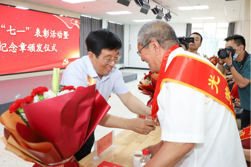 為慶祝中國(guó)共產(chǎn)黨成立100周年,謳歌百年黨史,傳承紅色基因,6月28日,在“七一”建黨節(jié)來(lái)臨之際,學(xué)院在知行樓師生活動(dòng)中心舉辦“光榮在黨50年”紀(jì)念章頒發(fā)儀式暨“七一”表彰活動(dòng),為26名離退休老黨員頒發(fā)了“光榮在黨50年”紀(jì)念章,對(duì)71名優(yōu)秀共產(chǎn)黨員進(jìn)行表彰。