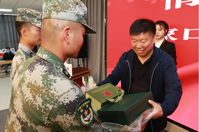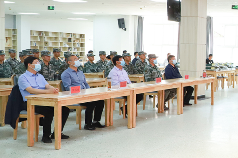 承訓部隊負責人、中國人民解放軍32137部隊副參謀長譚耕向學院領導表示感謝,同時也向全體師生送上節日祝福。他在講話中表示,通過軍訓進一步加深了部隊與學院、官兵與師生之間的聯系,形成了互學互助的良好氛圍。在下一步軍訓任務中,承訓部隊全體教官將與同學們一起,刻苦訓練,以飽滿的訓練熱情和昂揚的精神風貌圓滿完成此次軍訓任務。