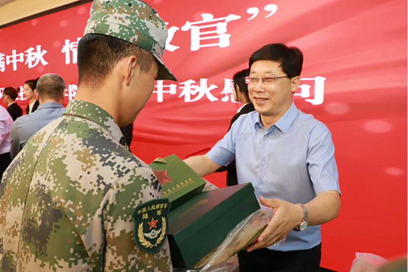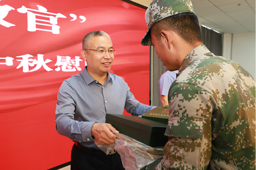 學院領導向全體教官送上中秋佳節祝福并贈送慰問品。