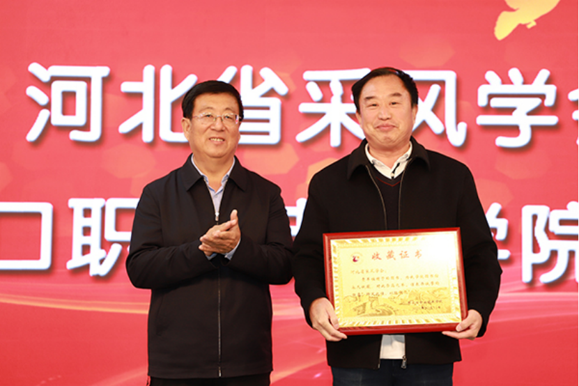 張炳吉介紹了省采風學會基本情況,他表示,河北省采風學會作為以文學藝術(shù)創(chuàng)作為主的學術(shù)性、非盈利性民間社會團體,自2014年成立以來,在采風創(chuàng)作、內(nèi)部建設(shè)、人才培養(yǎng)、社會影響等方面有了很大發(fā)展,同時也高度關(guān)注教育事業(yè)發(fā)展,為助力我省高等教育事業(yè)發(fā)展作出積極貢獻。希望此次捐贈的原創(chuàng)書籍能夠進一步豐富張職院圖書館藏,拓展師生閱讀空間,為學院教育事業(yè)發(fā)展作出應(yīng)有貢獻。
