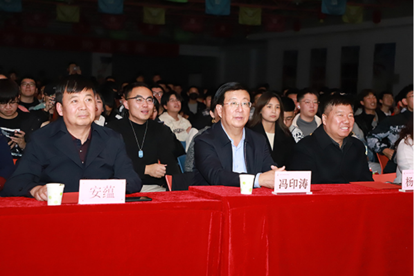 10月15日,學(xué)院西校區(qū)舉辦“以心迎新 綻放青春”迎新晚會(huì),歡迎2021級(jí)新生入學(xué),獻(xiàn)禮建黨100周年。學(xué)院黨委書記馮印濤、副書記楊汝明、機(jī)械工業(yè)學(xué)校副校長(zhǎng)安蘊(yùn)與師生們共同觀看演出。