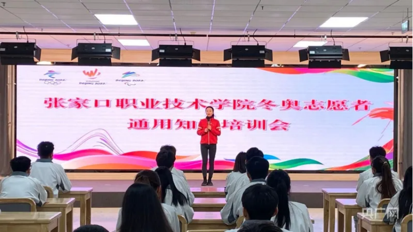 金銘鈺在為青年志愿者做冬奧會通用知識培訓(xùn)(央廣網(wǎng)記者 崇錦芳攝)
