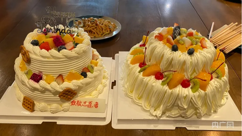 金銘鈺為志愿者準(zhǔn)備的生日蛋糕(央廣網(wǎng)記者 崇錦芳攝)