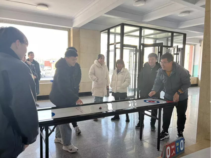 為豐富師生課余生活,營造校園冬奧氛圍,12月15日,土木工程系在求知樓舉行了一場精彩紛呈的旱地冰壺競賽。