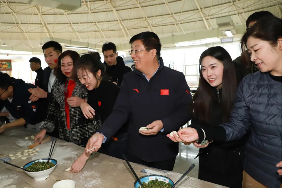 經(jīng)過留校師生們精心布置學院文饗餐廳內(nèi),環(huán)境煥然一新,處處洋溢著濃濃的年味。黨委書記馮印濤同留校師生們一起包餃子話家常,共迎新春佳節(jié),共敘新年愿景。過程中,馮印濤與師生們交流著包餃子的方法和各地過年的習俗,關(guān)切地詢問師生們訓練和生活情況,叮囑他們要常與父母親友溝通聯(lián)系,相互關(guān)心,互幫互助,共同度過一個溫暖、充實、祥和的春節(jié)。馮印濤還鼓勵大家要刻苦訓練,用最好的精神狀態(tài)完成冬奧會重點文化活動任務。